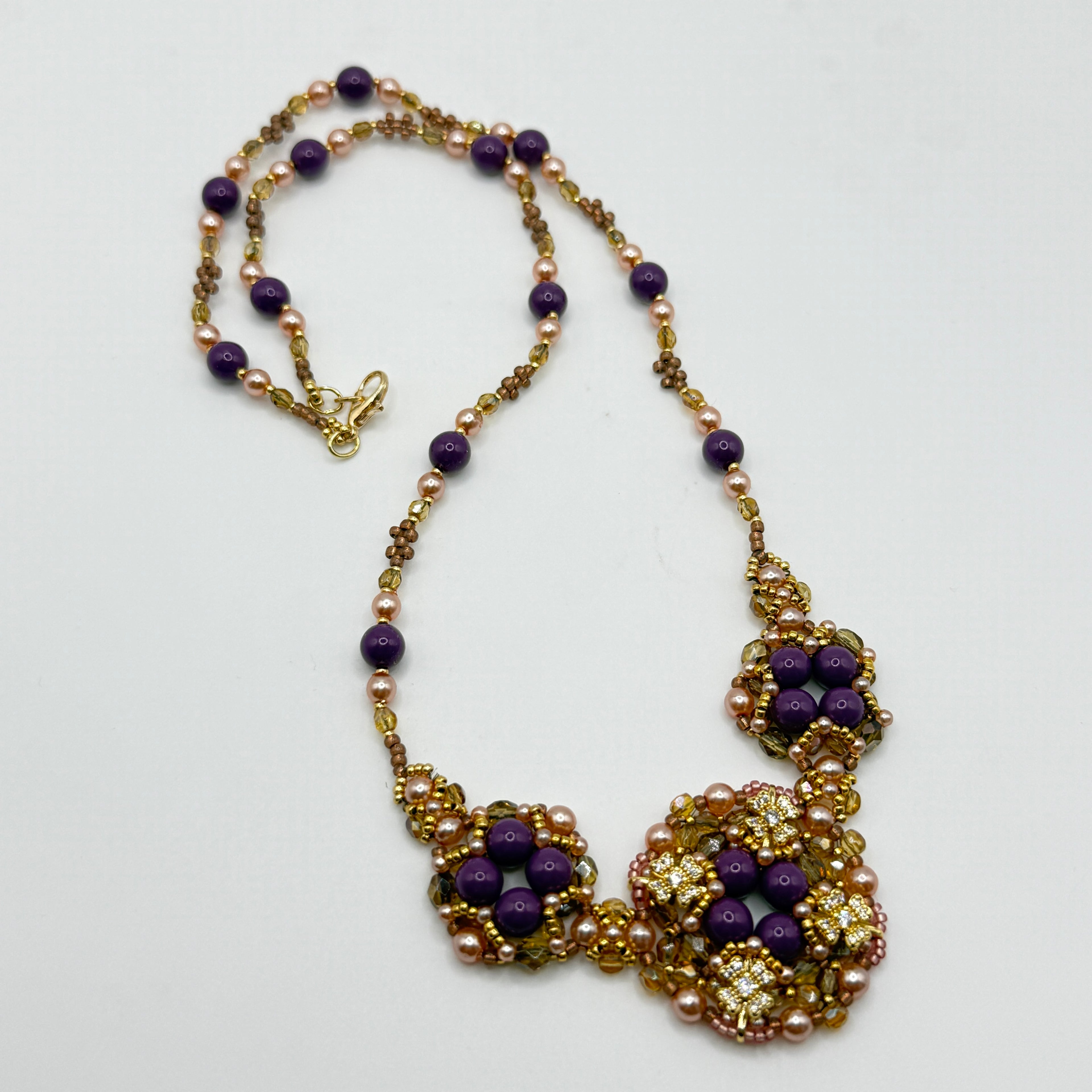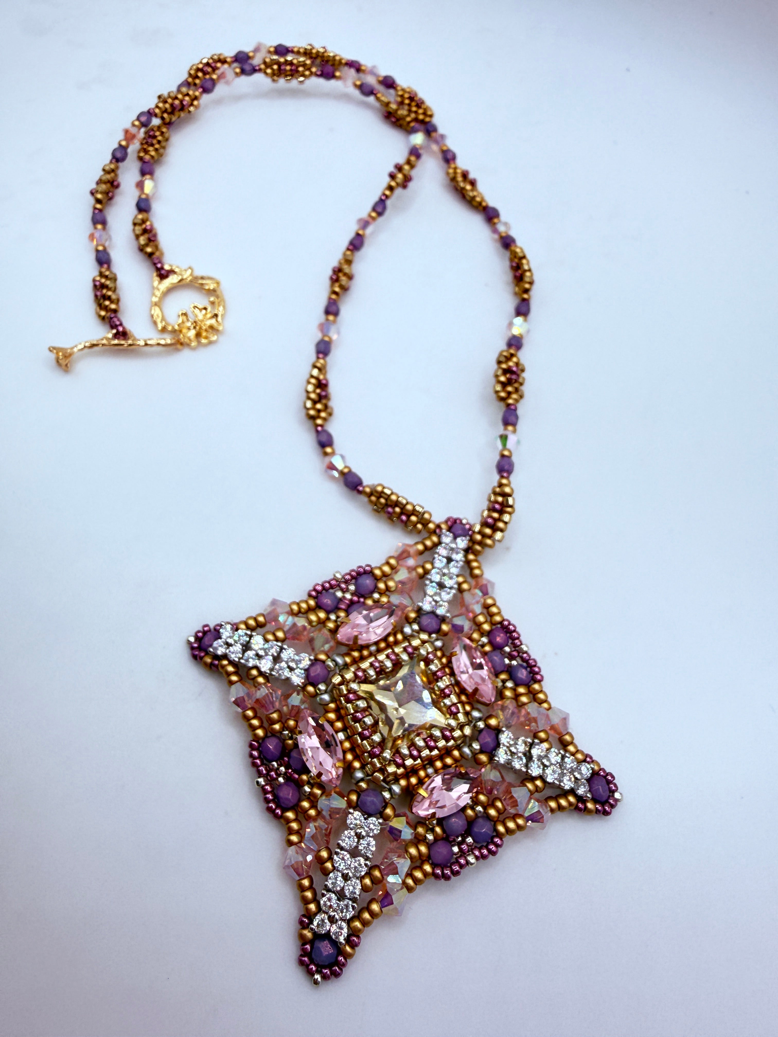 Inspired by the quiet strength of desert blooms, this design celebrates organic form, glittery palettes, and playful texture. At its heart: a radiant floral motif built from pearls, golden glints, and crystal flower shimmer — each bead chosen to evoke sun-warmed blooms.
